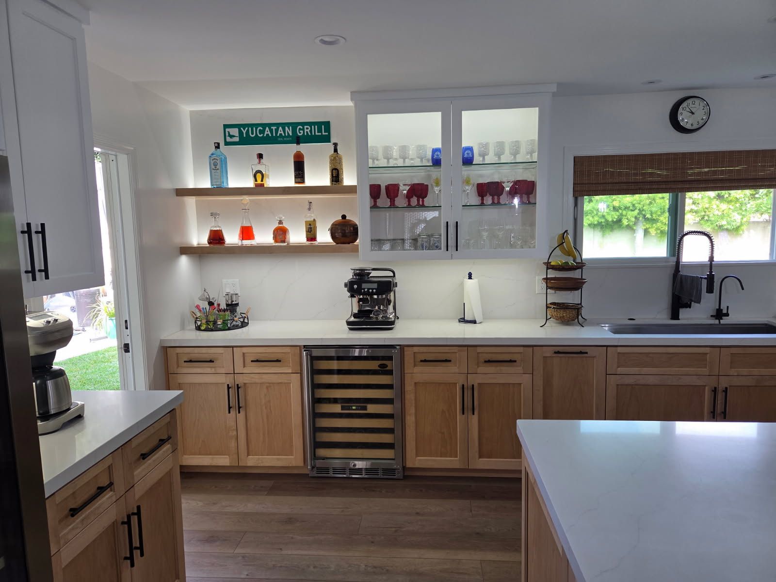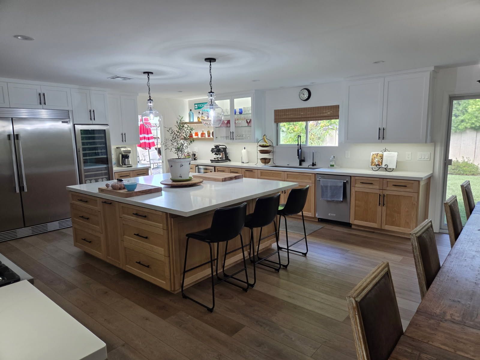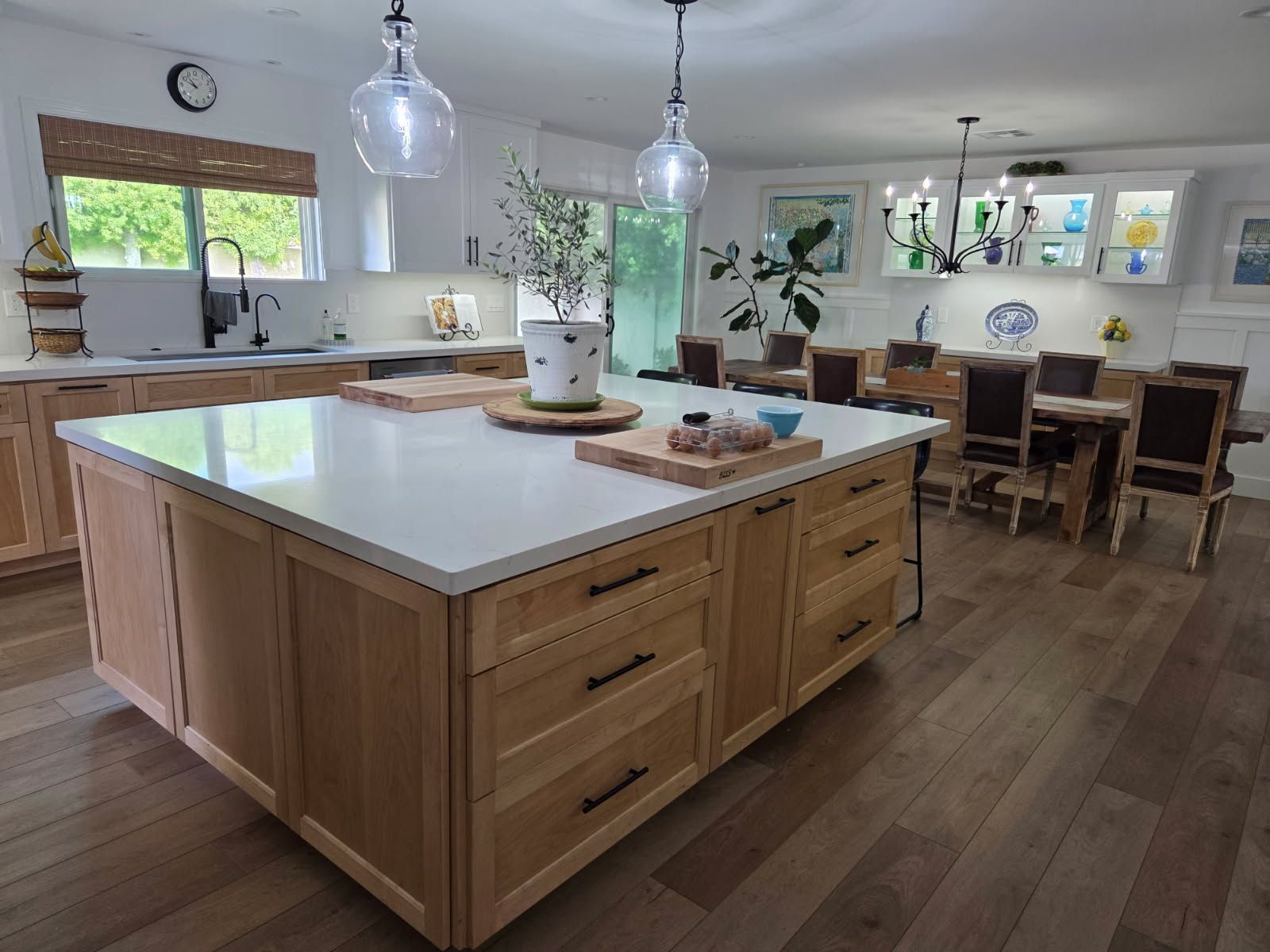 Custom kitchen in Huntington Beach. Natural solid maple with clear conversion varnish finish.