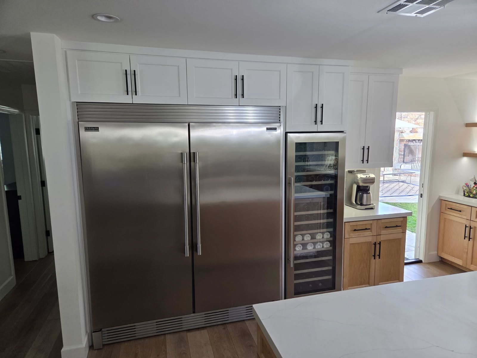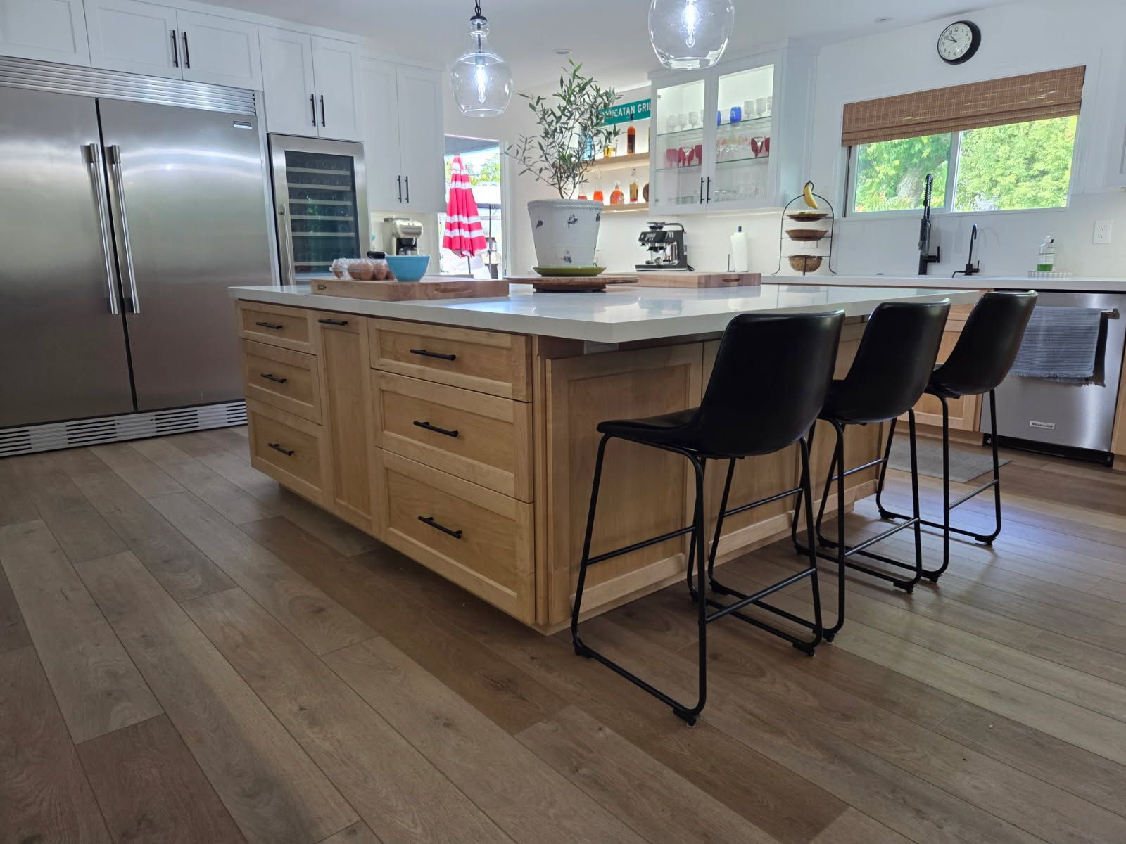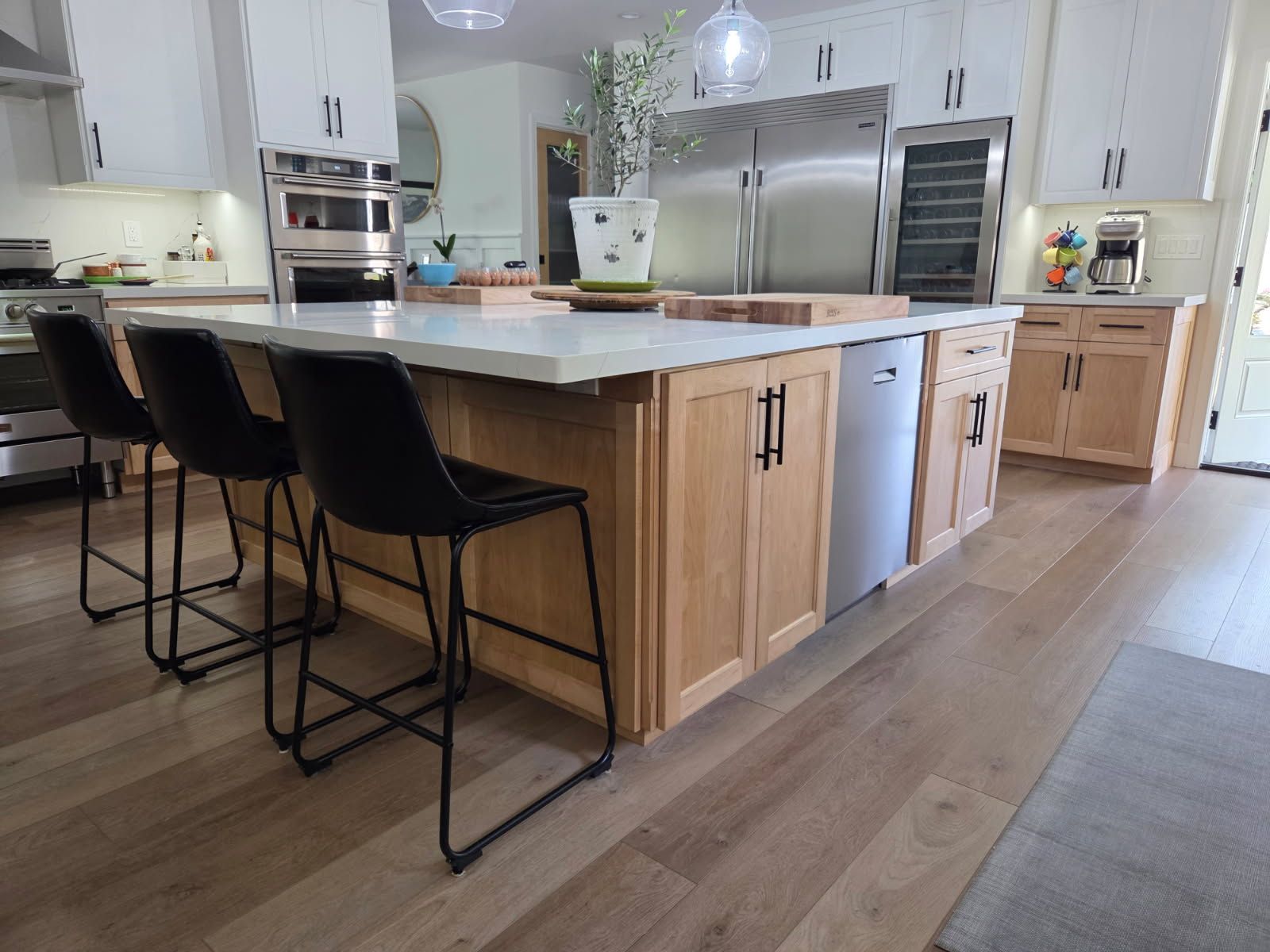 Custom kitchen in Huntington Beach. Natural solid maple with clear conversion varnish finish.