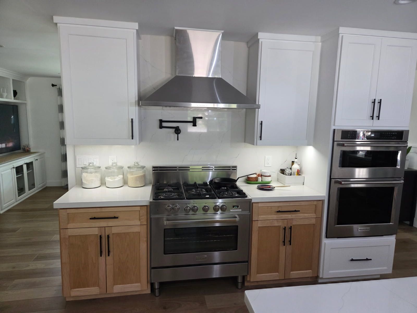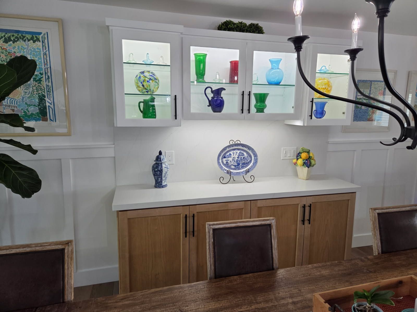 Hutch cabinetry in Rossmoor. Solid maple - uppers painted with lowers in a honey stain.